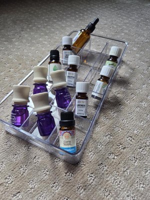 This thick plastic organizing tray is good for small items, like jewelry or like what I did, for essential oils. You can take the short dividers out to make long rows and the two long dividers too. Easy to clean out and fits most drawers