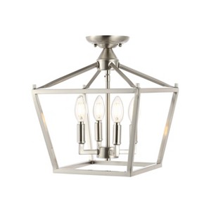 Perfect for low ceilings, our open lantern is ideal for your farmhouse, modern cottage, or coastal home. This timeless design features four LED candelabra bulbs inside a nickel semi-flush frame. Enjoy this small ceiling fixture in the kitchen, bedroom, entry, hallway, or closet.