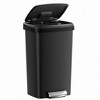 This space-saving 12-gallon trash can features a stainless steel pedal and soft-close lid for quiet, reliable operation, supporting over 150,000 uses. Made from durable PP plastic with bottom wheels and a rear handle, it offers easy mobility and includes a carbon filter to reduce odors. Ideal for small kitchens, it keeps liners secure and maintains a clean appearance with its integrated lid design. Product Size: 15.2"L x 13.7"W x 24.2"H (38.5 x 34.7 x 61.4 cm) Height with Lid Open: 36.9" (93.6 cm) Volume: 12 Gallons (45 L) Product Weight: 8.3 lb (3.8 kg)
