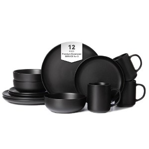 12-Piece Stoneware Dinnerware Sets with Mugs | Microwave & Dishwasher Safe,Black
