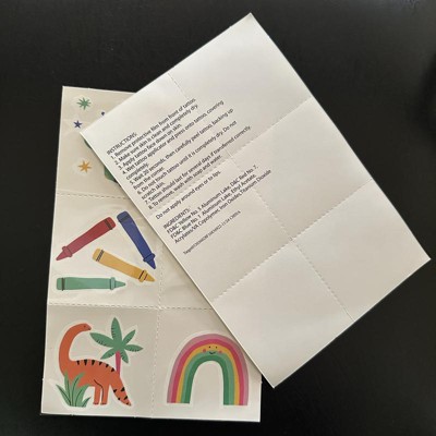 [This review was collected as part of a promotion.] This is a great activity table craft for kids at parties. It’s a good way to get kids involved in the party and there was a line around our table that was giving the tattoos out. It can be used on kids of any age, if you child has sensitive skin, keep away from face but hands and legs should be ok. The items come out really vivid and great on all skin colors. The instructions are on the back. I received an incentive to write this review.