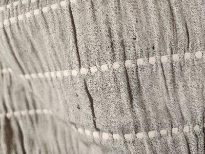 • Gray chambray matelasse fabric adorned with cream stripes