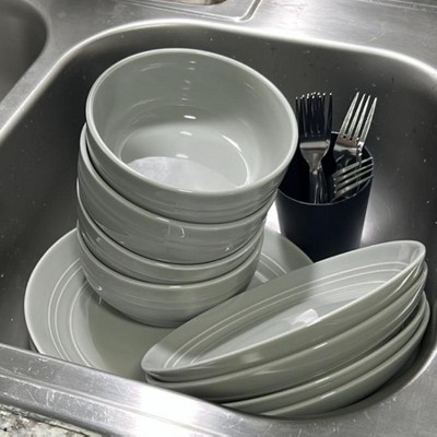 12pc Stoneware Westfield Dinnerware Set Gray - Threshold™: Solid Dish Set, Microwave & Dishwasher Safe, Service for 4