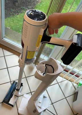 [This review was collected as part of a promotion.] Perfect genius decision! Its light weight ,battery charger and have a base, just like any other cordless vacuum. but the most unique or the genius design is it AUTOMATIC empty all trash into the base! The first time I finish vacuum and put it back to the base, it was “wooo” again, I though I touched something so the vacuum was on again, but it was not, it automatically suck all trash from the cordless vacuum into the huge base can on the bottom. It’s genius! Perfect. Now everyone in the house can do some cleaning work.