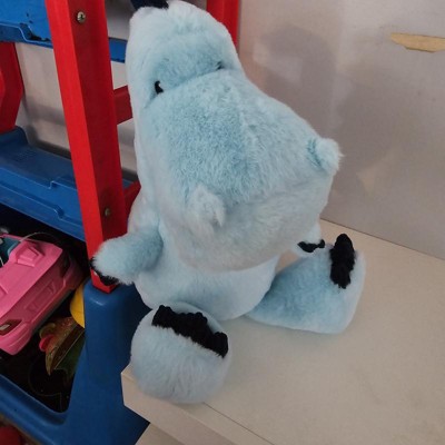 - Soft plush construction in light blue with dark blue corduroy spines and claws