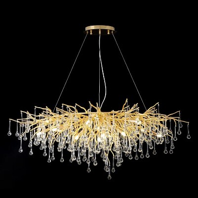 Every meticulously sculpted item within this extraordinary compilation presents a surface that has been delicately adorned through a refined frosted technique. The chandelier is crafted with exquisite decorative branches and stunning K9 transparency. This intricate procedure amplifies the texture while ascending the chandelier's overarching grace, culminating in a captivating visual extravaganza. The elaborate intricacies of this design seamlessly arrest your gaze, plunging you into a realm of exquisite aesthetics.