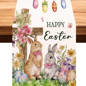 13 x 72 Inch Happy Easter Table Runner Bunny Egg Flower Spring Easter Table Decorations Kitchen Dining Table Decor Tablecloth for Home Office Classroom