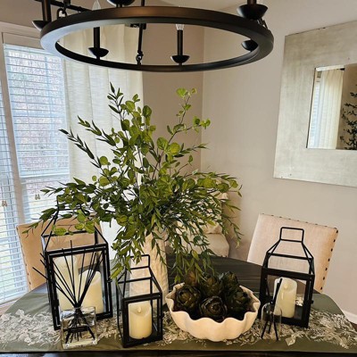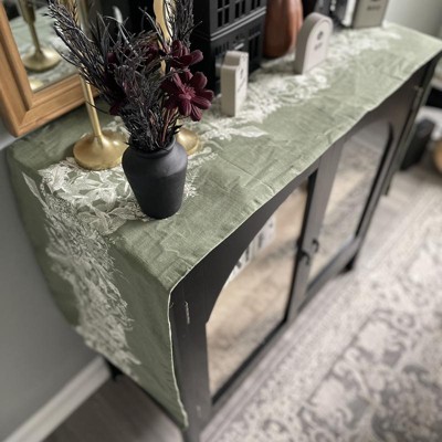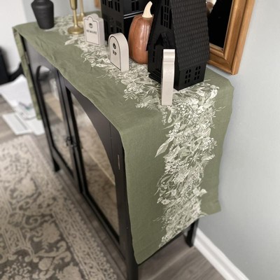 This Floral Table Runner from Threshold™ designed with Studio McGee enhances your dining experience for any occasion. The rectangular table runner is adorned with a floral print in white and green tones down the center on a dark green backdrop for a beautiful look. The 100% cotton construction with backing helps protect your table from accidental spills, and it can be machine washed for easy care. Pair with coordinating napkins and placemats to create a seamless and chic dining setting.