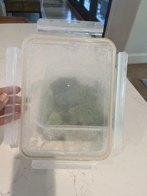 I like this container a lot because it is dishwasher safe and is lightweight. I have a similar glass container but it becomes too heavy if you want to take it to go so this will be nice to have especially to take outside of the house. The lid locks down on each side so secures the food tightly.