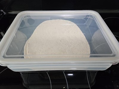 Great size for storing leftovers! We've used it for pizza and French toast. Love that it fits all the leftovers instead of needing multiple containers. Easy to see what's inside. Lid snaps on tight. Love that it's both dishwasher and microwave safe (so far). Would be perfect if it were glass instead of plastic.