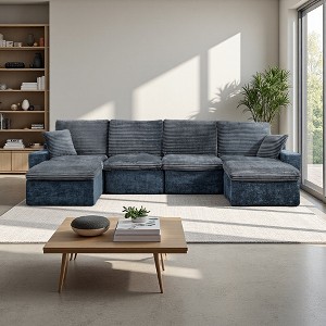 142" Chenille U-Shaped Modular Cloud Sectional Sofa, Deep Seats