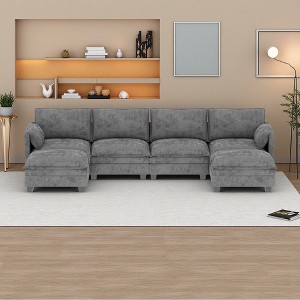 The 6-seater sofa and ottoman are upholstered in breathable, skin-friendly fabric. Seat cushions feature pocket springs and high-density foam for long-lasting comfort and support without easy deformation.