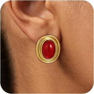 Gold Drop Burgundy Earrings: Statement earrings with Vintage Red Oval design , adding timeless elegance to your look. Perfect for women who love unique, vintage style that transitions from daily wear to evening outfits