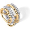 HIGHLIGHTS: We've found the missing link for your jewelry box! These two-toned rings, plated in 14K yellow gold and rhodium, feature interlocked designs that offer a unique take on stacking style. Wear them your way: stack them together or separate them to wear across different fingers. The set includes one 2mm band, two 3mm bands, and one 3.7mm band, with a dimensional design that adds a modern touch. Plus, sparkling cubic zirconia stones add an extra touch of bling to elevate your look.