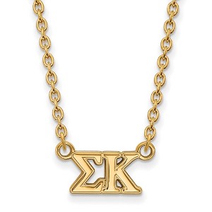 - Unique Features - Show your greek life spirit with this Sigma Kappa Sorority necklace. It is crafted with yellow gold plated silver and is 18 Inches in length. The pendant is 8mm in width and 11mm in height (0.31 in x 0.43 in) and dangles from a 1.95mm wide cable chain. We are a certified Collegiate jewelry retailer and this authentic item is licensed by the Sigma Kappa Sorority and Greek Life. This pendant necklace is made the USA.