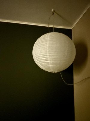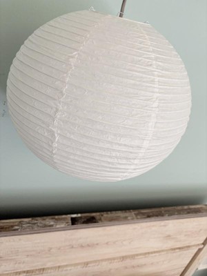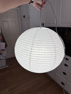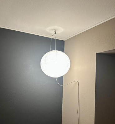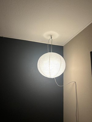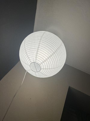 This beautiful 15.75" Round Paper Shade Ceiling Light by Room Essentials is a modern, classy addition to my bedroom. The simple design is the perfect lighting solution. The delicate, white paper shade gives this lamp a light feel; while allowing a soft glow to illuminate my whole room. I especially appreciate how the globe shaped shade keeps the light from beaming directly into my eyes while reading in bed, and relaxing. Normally, I prefer items in my home to be symmetrically placed; but the size and style of this lamp helps it to stand alone and be perfectly balanced in my room decor. I really love it and would recommend this Room Essentials hanging light to all my friends and family.