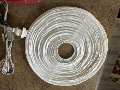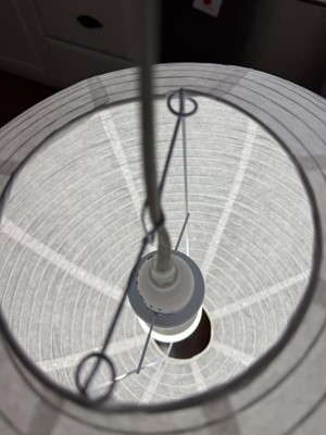 Bring a soft, ambient glow to your space with this Paper Shade Ceiling Light from Room Essentials™. This round ceiling light features a paper shade with an adjustable height for customizable lighting. Plus, it boasts an inline rocker switch for easy on/off operation. Add it to a reading nook, your bedroom or above the dining table for a cozy vibe.