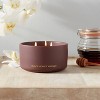 Lift your spirits with the refreshing, pleasant fragrance of the 15oz Ceramic Jar 3-Wick Black Honey Vanilla Candle Plum Purple from Threshold™. This candle infuses your home with honey and vanilla scents that creates an inviting ambience you’re sure to appreciate. While the gentle light flickers and sends shadows across the walls, the ceramic exterior add to the overall vibe. Easy to display on a mantel or a side table, this Threshold™ black honey vanilla candle is a must-have essential you’ll want to keep handy.