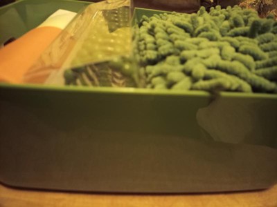 Love this shower curtain set. Everything is great quality and I love that the hangers have little balls on them to help roll across the curtain rod. The banana pattern is super fun, and the curtain itself is thick enough that it doesn’t feel cheap, but still light enough to let light through despite the darker pattern. Perfect for a student apartment — especially with the storage box!