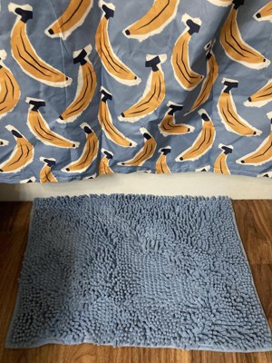 Add a little sweetness to your everyday bath routine with the Bananas 15pc Shower Bundle Set from Room Essentials™, which features playful yellow banana prints on a blue background. This 15-piece bath set includes a fabric shower curtain, plastic shower hooks, a cozy chenille noodle rug, and a coordinating plastic storage basket to organize and store your favorite bath items. Pair the fabric shower curtain with your favorite shower curtain liner (not included). You can keep this shower curtain and bath rug looking new by machine washing them in cold water and drying them on a low setting as needed.