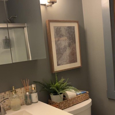 I put this framed print in my bathroom after updating the paint and some hardware, it really brings out the blues and greens that are in my bathroom!
