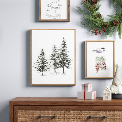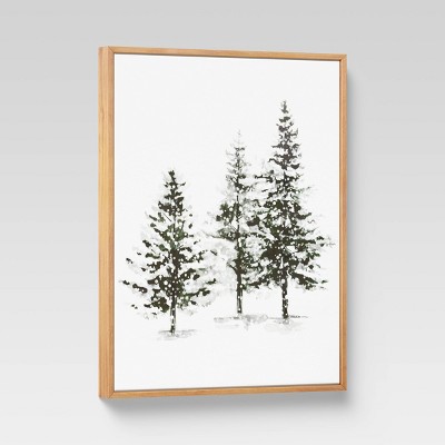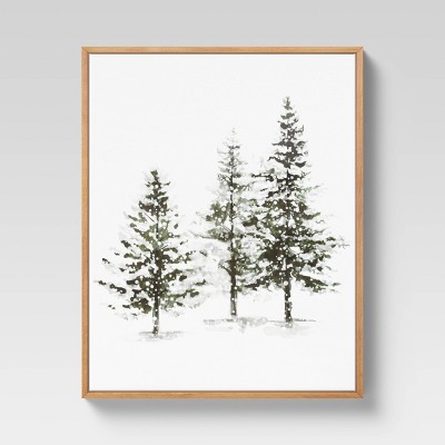 Liven up your living spaces with the 16" x 20" Winter Evergreens Framed Wall Print from Threshold. This piece features a minimalist work of trees in a snowscape in greens and white that will look great in any decor style. Put this up on an empty patch of wall to add a new dimension. This also makes for a thoughtful present for the holidays.