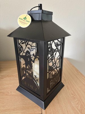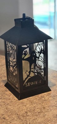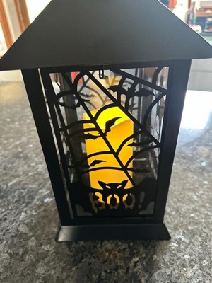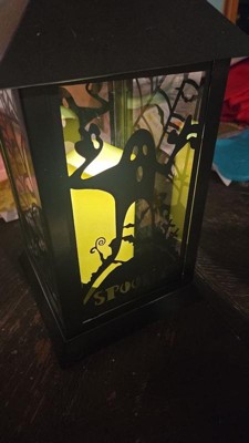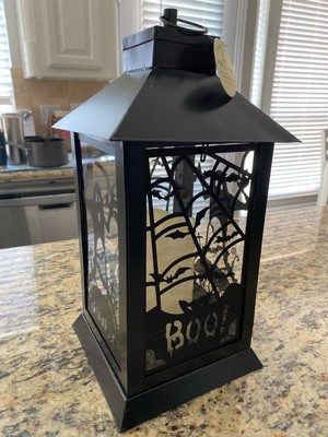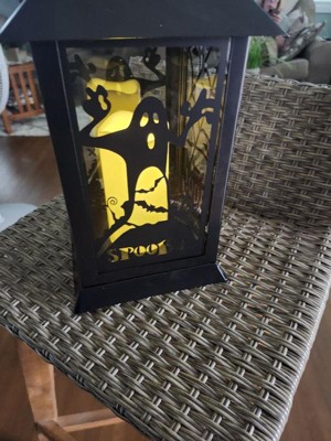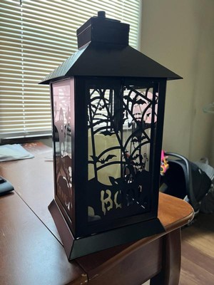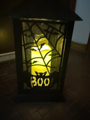 [This review was collected as part of a promotion.] This Black Halloween Ghost Lantern is very cute and it fits my indoors Halloween theme well. It’s a soft white lighting lantern with cute metal bat detailing. Great addition to my collection.