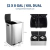 - Dual Compartment & Large Capacity: This stainless steel trash can features two separate 8-gallon inner buckets, perfect for sorting recyclables and trash. The 16-gallon total capacity makes it an ideal kitchen garbage can for home and office use