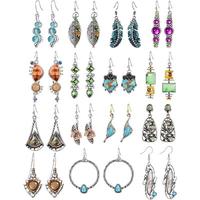 16-Pair Silver Dangle Earrings Set, Hypoallergenic #4-15pairs retro style One Size