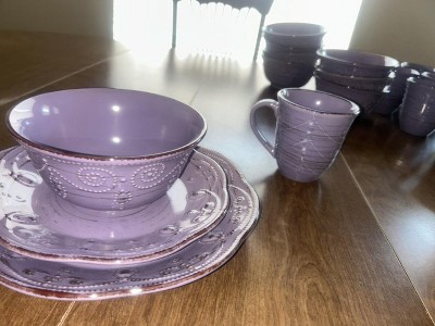 I love this set of purple stoneware dishes so much, I just bought a second set!!! Beautiful, sturdy, and always look clean! Perfect for daily use! Thank you for a wonderful dish set!!!! And a really great price!