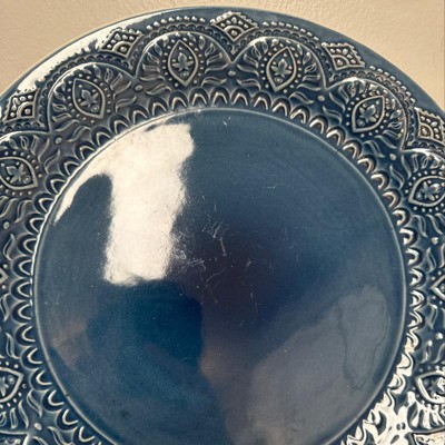 16pc Stoneware Mandala Embossed Dinnerware Set Blue - Elama: Classic Lace Pattern, Service for 4, Microwave & Dishwasher Safe