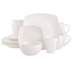 16pc Stoneware Soho Lounge Square Dinnerware Set White - Gibson Soho Lounge: Porcelain, Solid Pattern, Service for 4
