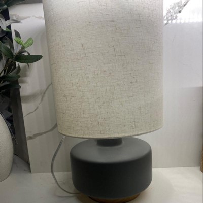 17"x9.5" Ceramic Table Lamp with Wood Base - Threshold™: Linen Shade, No Assembly Required