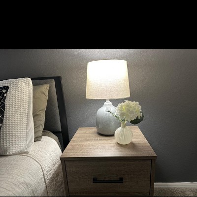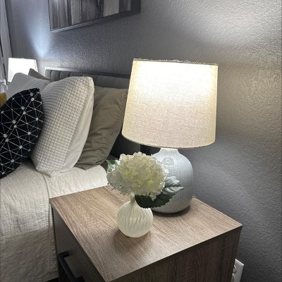Lighten up your space with this Gray Medium Assembled Ceramic Table Lamp from Threshold™. This ceramic table lamp makes a welcome addition to your indoor lighting. It features a glossy bud-shaped base with a gray speckled design for sophisticated, chic flair. The white drum shade diffuses light for a soft, ambient glow, while the one-way light setting with a simple on/off switch allows for easy operation. Place it on the side table next to your sofa or console in your living room for an inviting look.