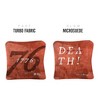 Our Synergy Pro Bags are Dual Sided Bags that are made with 2 different materials and filled with Plastic Resin. Dual Sided Bags give the player the option of a throw that either slides or sticks firm when it hits the playing surface. The "Slow Side" is microsuede and the "Fast Side" is poly turbo weave fabric. The suede grabs onto the playing surface stopping the bag once it hits the playing surface. Great for precision shots or the last point win shot. The poly turbo weave allows the bag to slide on the playing surface - great for scoring throws or knocking off opponents bags. Bags are ACA Regulation 6" x 6" and Weigh 14oz - 16oz. "Fast Side" is Poly Turbo Weave Fabric - Perfect for Sliding. Double Reinforced Stitching for Long-Lasting Durability.