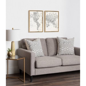 18" x 24" 2pc Sylvie Black/White Modern Retro World Map Framed Canvases by the Creative Bunch Studio Gold - Kate & Laurel All Things Decor