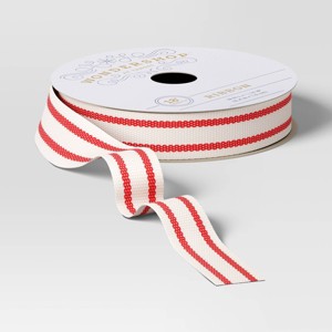18’ Christmas Fabric Ribbon Ivory/Red Stripes - Wondershop™