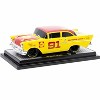 Brand new 1/24 scale diecast car model of 1957 Chevrolet 150 Sedan #91 Yellow with Red Hood and Top "Shell Oil" Limited Edition to 6250 pieces Worldwide die cast model car by M2 Machines.