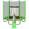 Meet the 7FT trampoline—your family’s new go-to for indoor/outdoor fun, perfect for tiny adventurers! It has a playful, kid-focused look, plus a smooth molded slide and free soft cushion. The setup feels like a mini playground, sure to excite toddlers. This trampoline is fun and flexible! Little ones can climb, jump, roll, or slide to burn energy. Its size works indoors/outdoors, so rain or shine, kids have a play paradise. It gets them off TV/sofas for family bonding. Durability and safety are top-notch! The safety net is high-strength polyester with UV protectors. The high-elastic jumping mat + 36 premium springs let kids jump freely, and it holds up to 220lbs. The U-shaped steel frame, safety pad, and zippered enclosure keep kids secure. Setup is easy—all hardware included. All in all, this 7FT trampoline is more than a toy: it lets kids release energy, bond with family, and play safely anytime. One order brings their favorite games to your backyard—what’s not to love?