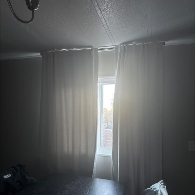 These curtains look very nice, but they are definitely not 100% blackout as the packaging claims; some light still filters through. My biggest issue, however, is the labeling. I’ve had to go back to the store four times now because the labels are incredibly misleading. I bought a few sets initially and went back for more, but even though the labels were identical, the color tone was noticeably different. It’s also very confusing that the product names online don't match the names in-store. I’m still missing two panels to finish my room because I can't find a matching set, even when bringing a physical sample with me. This has been a very frustrating experience.