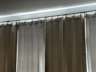 We were looking for white linen-like, blackout curtains. We liked the weave of this fabric, and the linen look. Blackout meant sold. Fulfilling the order of four panels took over a week. We hung the next day we received them, which was a sunny day. With a blackout shade already in the window, we proved that the curtains are not 100% blackout. That said, we do think the white looks great against the soft white colored walls, for the coastal look. And the room darkening curtains with the blackout shade will work. But still, we wanted 100% blackout for this room. The panels are fortunately all the same length. We hung these curtains with Target's Threshold curtain ring clips, and needed double the rings (14, not 7) due to the weight of each panel. We are satisfied with the price point, color, fabric look, and the accuracy of the panel length. The curtains really are room darkening, but not blackout.