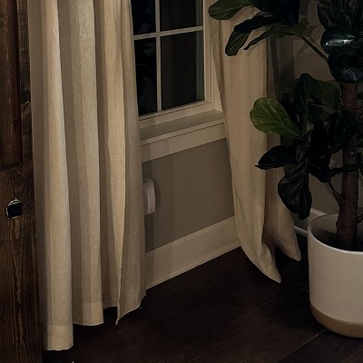 The linen fabric is lovely, but they just aren't worth the headache. Four panels, four different lengths, ranging from 82"-88". I learned an important lesson: verify the length of panels before using them to decide the height of the curtain rod.