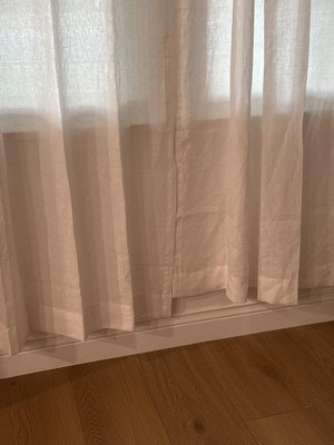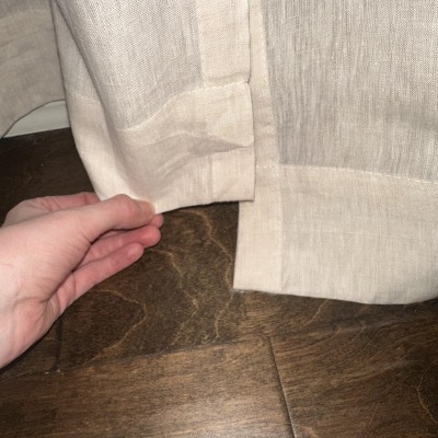 These linen curtains are a very nice linen material, However! The lengths are inconsistent, one is 82 1/2 on one side of the curtain and 84 on the other which looks really bad when hung. Also Out of the 7 panels , one of them , the color is OFF just a creamy white and not a pure white and so they do not match if hung together. If the lengths were right and the colors weren’t off they would be a great deal. I may reorder in a longer length and hem them properly. Other choice is Pottery Barn which I know would be perfect the first time, BUT they’d be $900