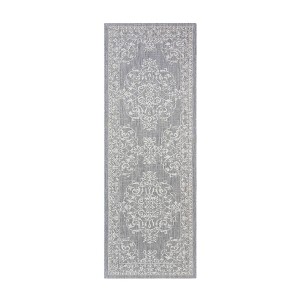 This rug is stunning! Has that french old world look to it. I ordered a 5x7 gray & cream and it is beautiful - so much so it went straight under my small dining table. (Now I have to order another one for my deck)!!! Came rolled in saran wrap and even though I have only had it in the house an hour or two the creases are slowly flattening. This is a beautiful rug with nice edges. Target I love you.