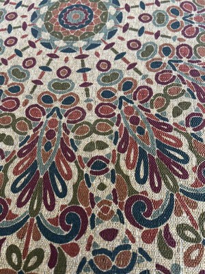 A: The doormat features a medallion print, adding an elegant touch to entryways.