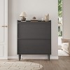 This space-saving shoe cabinet features your choice of 2 or 4 flip-down drawers that discreetly conceal footwear while providing easy access. The adjustable interior shelf allows customization for different shoe heights (boots, sneakers, or sandals). Crafted from durable engineered wood with a sleek finish, this organizer fits perfectly in entryways, hallways, or living rooms while maintaining a clean, furniture-like appearance. The compact depth (under 12") makes it ideal for small spaces, and the soft-close hinges ensure quiet operation.