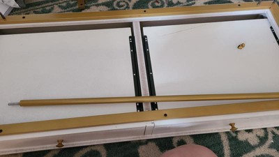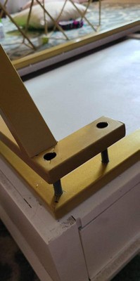Disappointing. This looks great in the picture but this is so cheap in person. The gold color scratched off while attempting to assemble, and the holes don’t all line up. Also, I was sent the blue instead of the black. I will be returning.
