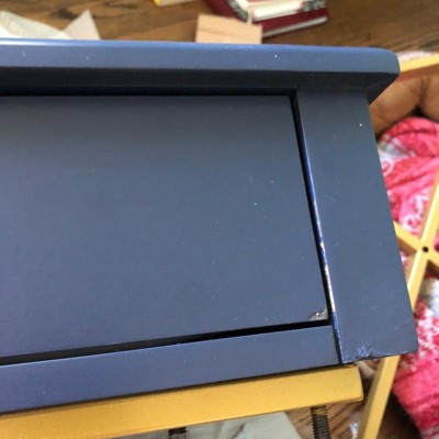 When I received the package I wasn’t even notified they left it outside in my drive way, also not close to the door where it can be seen by me. Also with a broken box, luckily my neighbors saw the package and they notified me. I opened the package and everything looked fine until I turned the desk over and in the front of the desk it has a paint chip. its a small paint chip but since the desk is like a navy blue it is noticeable.