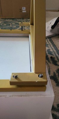 I returned this the same day I received it. I ordered the white and gold version, the gold in person looks like a mustard brown yellow, not gold. While i was putting it together, the paint would chip off. The screws that were built in were lopsided on a corner and i couldn't get the leg on. I decided to return it since i shouldn't have to fix something that i paid $200+. I'm really disappointed because was really looking forward to receive this desk.