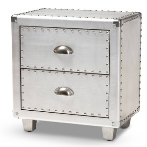 Baxton Studio 2 Drawer Davet Metal Nightstand Silver: Mid-Century Modern Style, Particle Board Frame